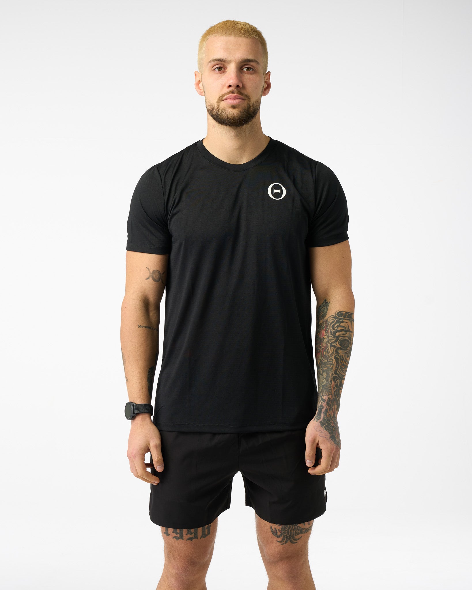 Race Team T-Shirt v2: Our design approach for this t-shirt was the combination of durability and breathability for a lightweight top you can wear on race day and training. The base fabric is a modified polyester, where we have removed all excess weight before compromising the tops durability. Woven in breathable holes throughout the entire t-shirt, boost the breathability whilst adding an aesthetic textured finish. Completed with elastic strips woven into the shoulder-neck seam to increase the tops durability and ease of removal on race days.