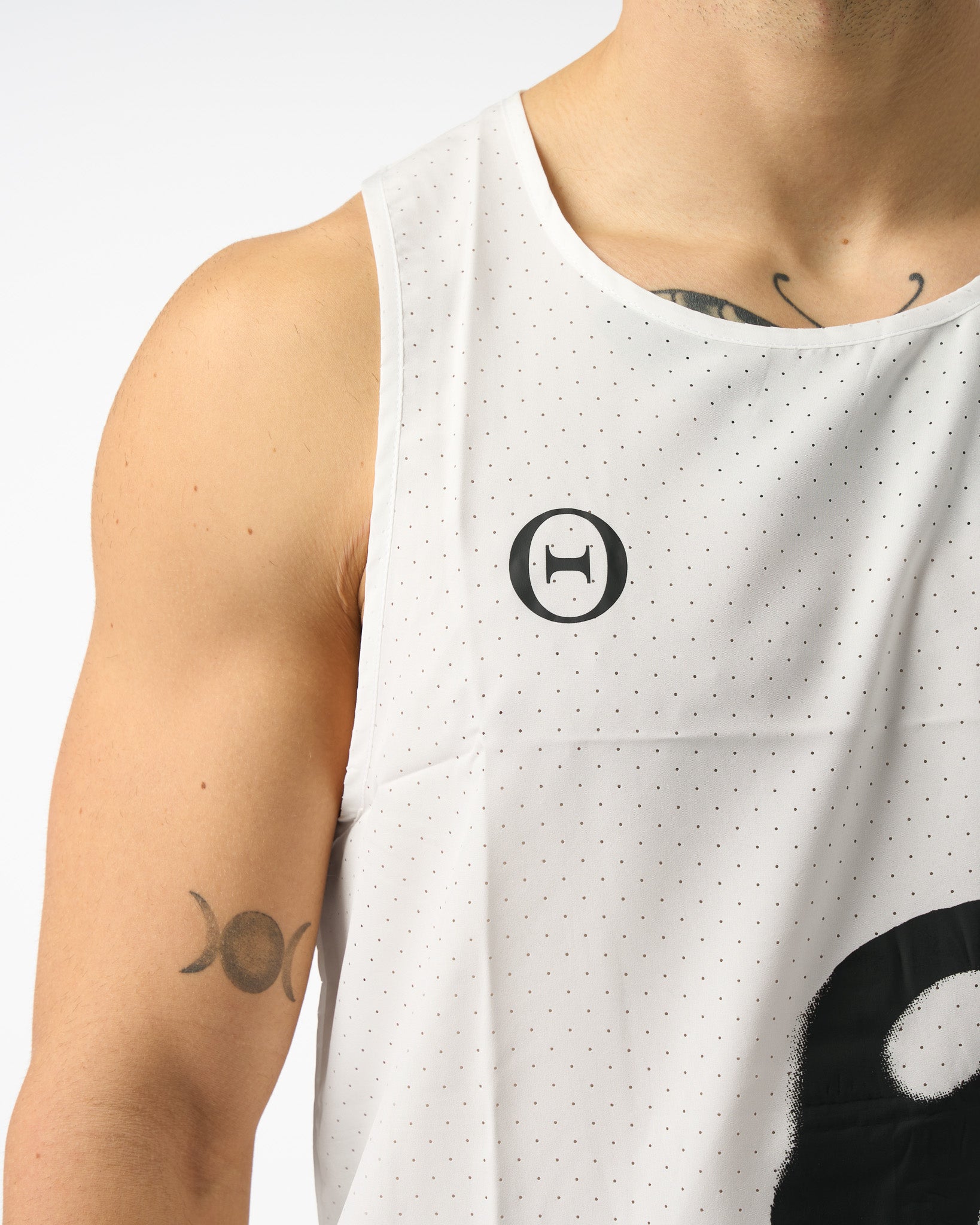 Race Singlet: Our design approach for this singlet was the combination of technical features and speed for a lightweight shell top that delivers when you need it on race day. The base fabric is a polyester/elastane blend, providing a durable and ultra lightweight base with laser cut breathable holes. Featuring reinforced shoulder and hem seams to provide as much durability as possible for our flagship lightweight fabric and a design inspired by the track layout of our brands first Hyrox record.