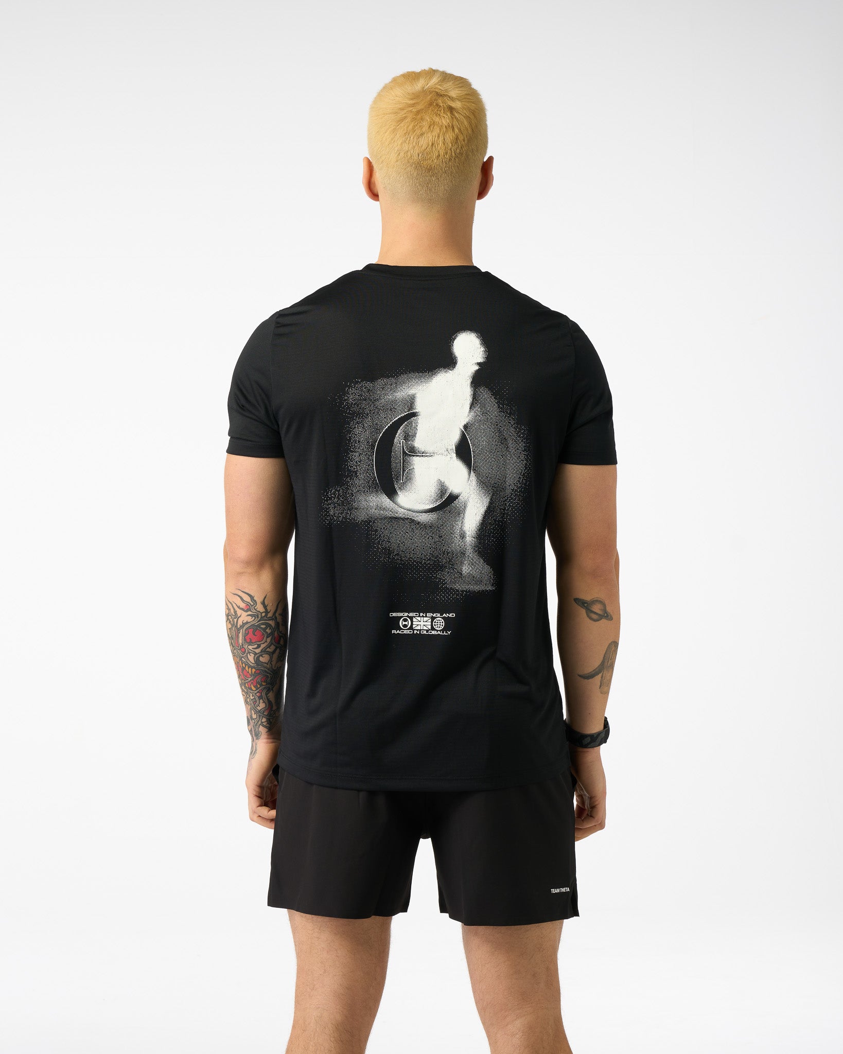 The THETA Graphic T-Shirt was designed for one purpose... Fitness Racing. Our design approach for this t-shirt was the combination of durability and breathability for a lightweight top you can wear on race day and training. The base fabric is a modified polyester, where we have removed all excess weight before compromising the tops durability. Woven in breathable holes throughout the entire t-shirt, boost the breathability whilst adding an aesthetic textured finish. Completed with elastic strips woven into the shoulder-neck seam to increase the tops durability and ease of removal on race days.